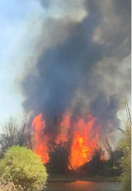 மரவகண்டி அணையின் கரை ஓரத்தில் உள்ள மூங்கில் காட்டில் 50 அடி உயரத்திற்கு தீ எரிந்து வருகிறது. காட்டுத் தீயை அணைக்க 50க்கும் மேற்பட்ட வனத்துறையினர் ஒரு மணி நேரமாக போராடி வருகின்றனர்.