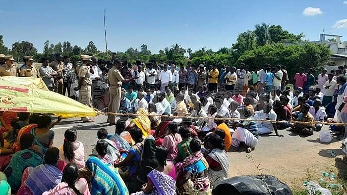 தகட்டூரில் மறியலில் ஈடுபட்ட கிராமத்தினர்