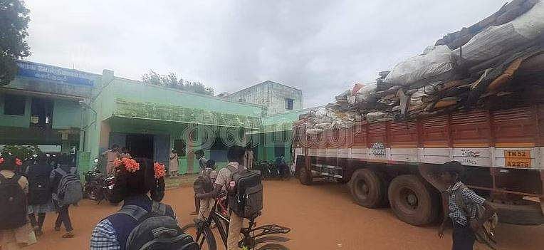 இந்நிலையில் விடுமுறை தினமான புதன்கிழமை பள்ளி வாசல் முன்பு கழிவுகள் அடங்கிய லாரியை போலீசார் கொண்டு வந்து நிறுத்தியுள்ளனர். இந்நிலையில் இன்று(வியாழக்கிழமை) காலை வந்த மாணவர்கள் மற்றும் ஆசிரியர்கள், பள்ளி முன்பாக கழிவுகள் அடங்கிய லாரி நிற்பதைக் கண்டு அதிர்ச்சி அடைந்தனர். அதிலிருந்து துர்நாற்றமும் வீசியதால் மாணவர்கள் கடும் அவதிக்கு ஆளாகினர்.