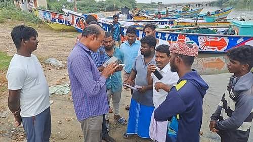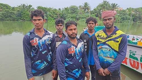 நாகப்பட்டினம் மாவட்டம், வேளாங்கண்ணி அடுத்துள்ள செருதூர் மீனவ கிராமத்தில் இருந்து கோவிந்தசாமி மகன் சக்திபாலன் என்பவருக்கு சொந்தமான பைபர் படகில் கடந்த 24 ஆம் தேதி காலை 7 மணி அளவில் கடலுக்கு மீன் பிடிக்க ஹரி கிருஷ்ணன், சூர்யா, கண்ணன், சிரஞ்சீவி, சக்தி பாலன் உள்ளிட்ட 5 மீன்வர்கள் சென்றுள்ளனர்.