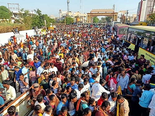 திருவண்ணாமலை நகரைச் சுற்றியுள்ள 9 சாலைகளில் 11 தற்காலிகப் பேருந்து நிலையங்கள் அமைக்கப்பட்டு இருந்தபோதிலும் பக்தர்கள் கூட்டம் அதிகமாக இருந்ததால் திருவண்ணமலை நகரமே பக்தர்கள் வெள்ளத்தில் மூழ்கியது.