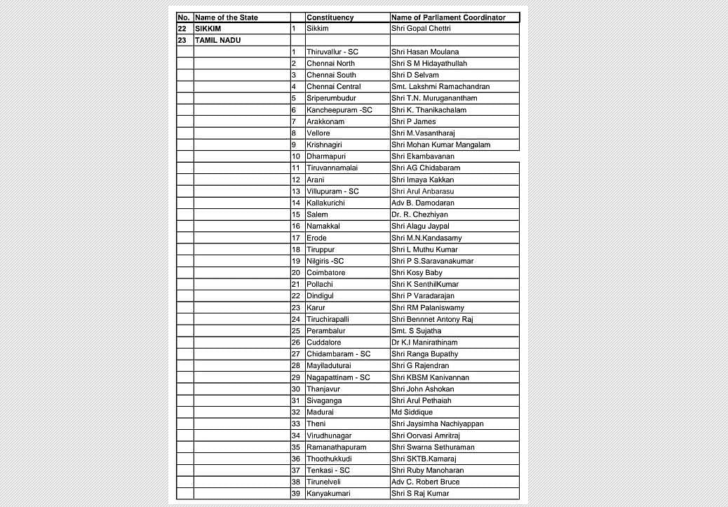 இந்த நிலையில் 539 நாடாளுமன்றத் தொகுதிகளை உள்ளடக்கிய ஒருங்கிணைப்பாளர்களின் பட்டியலை காங்கிரஸ் நேற்று வெளியிட்டுள்ளது. அதன்படி தமிழகத்தில் உள்ள 39 மக்களவைத் தொகுதிகளுக்கும் தொகுதி வாரியாக ஒருங்கிணைப்பாளர்கள் நியமனம் செய்யப்பட்டுள்ளனர்.