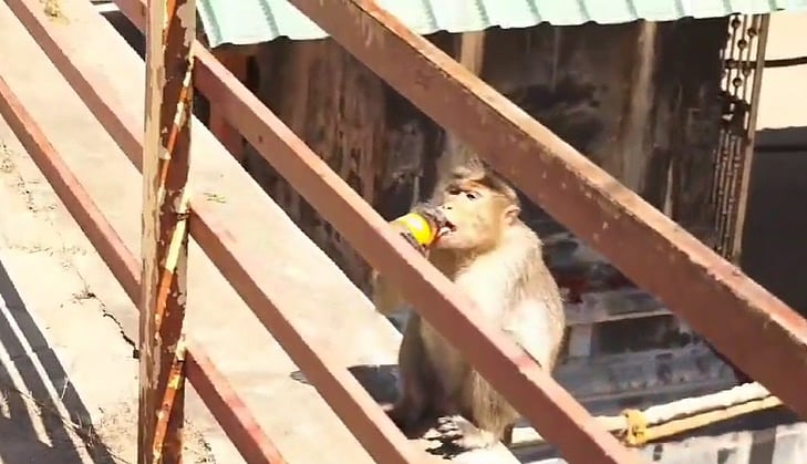 கோடை வெய்யிலை சமாளிக்க கூல்ட்ரிங்ஸ் குடிக்கும் குரங்கு!