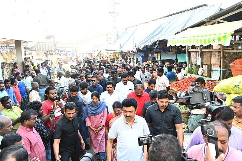 தூத்துக்குடி தனியார் தங்கும் விடுதியில் இருந்து காலையில் புறப்பட்ட முதல்வர் மு. க.ஸ்டாலின், தூத்துக்குடி காமராஜர் தினசரி காய்கனி சந்தையில் நடந்து சென்று அங்குள்ள வியாபாரி மற்றும் பொதுமக்களை சந்தித்து காய்கறிகள் வரத்து, காய்கறிகள் தரம் ஆகியவை குறித்து கேட்டறிந்து திமுக வேட்பாளர் கனிமொழிக்கு உதயசூரியன் சின்னத்தில் வாக்குகளை சேகரித்தார்.