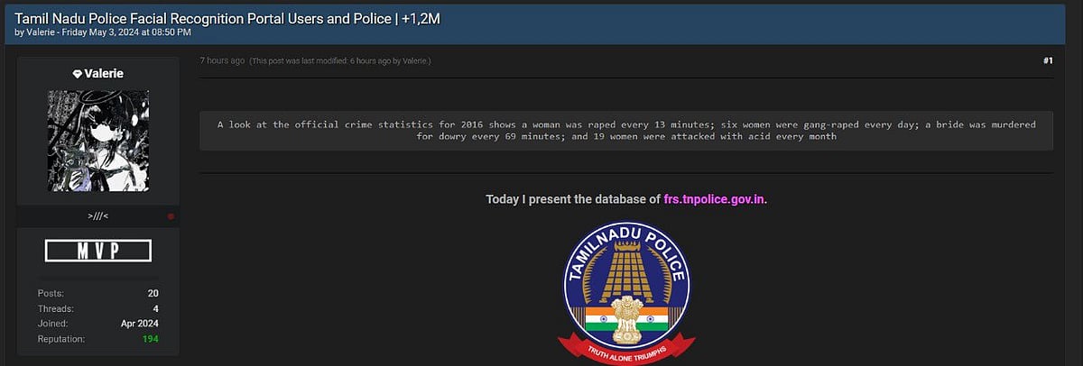 தமிழ்நாடு காவல்துறையின் முக அடையாளம் கண்டறியும் இணையதள பக்கம் ஹேக்கர்களால் முடக்கப்பட்டது.