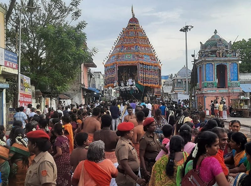 காரைக்கால்: திருநள்ளாறு தர்பாரண்யேஸ்வரர் கோயில் பிரம்மோற்சவ தேரோட்டம் நடைபெற்று வருகிறது.