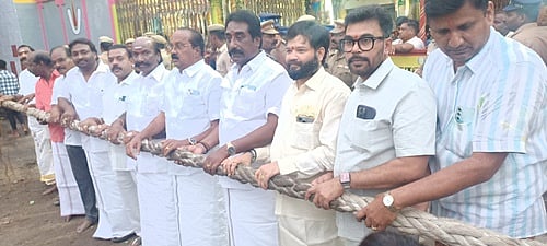 தேரினை குறு மற்றும் சிறு தொழில் துறை அமைச்சர் தா.மோ. அன்பரசன், சிறுபான்மையினர் நலத்துறை அமைச்சர் செஞ்சி மஸ்தான் ஆகியோர் வடம் பிடித்து இழுத்து துவக்கி வைத்தனர்.