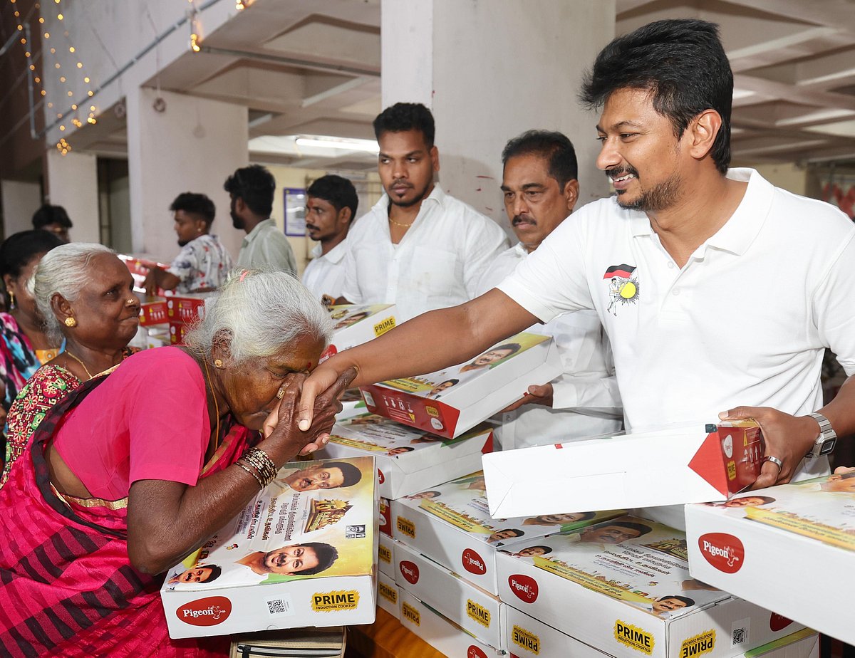 திமுக பவள விழாவை முன்னிட்டு, சென்னை திருவல்லிக்கேணியில் நடைபெற்ற நிகழ்ச்சியில் கலந்துகொண்ட துணை முதலமைச்சர் உதயநிதி ஸ்டாலின் 1,000 பேருக்கு நலத்திட்ட உதவிகள் வழங்கினார்.