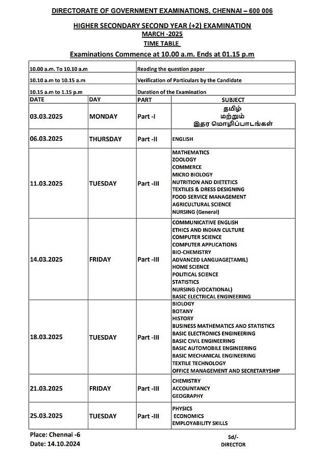 10, 11, 12 ஆம் வகுப்புகளுக்கு பொதுத்தேர்வு அட்டவணை வெளியீடு