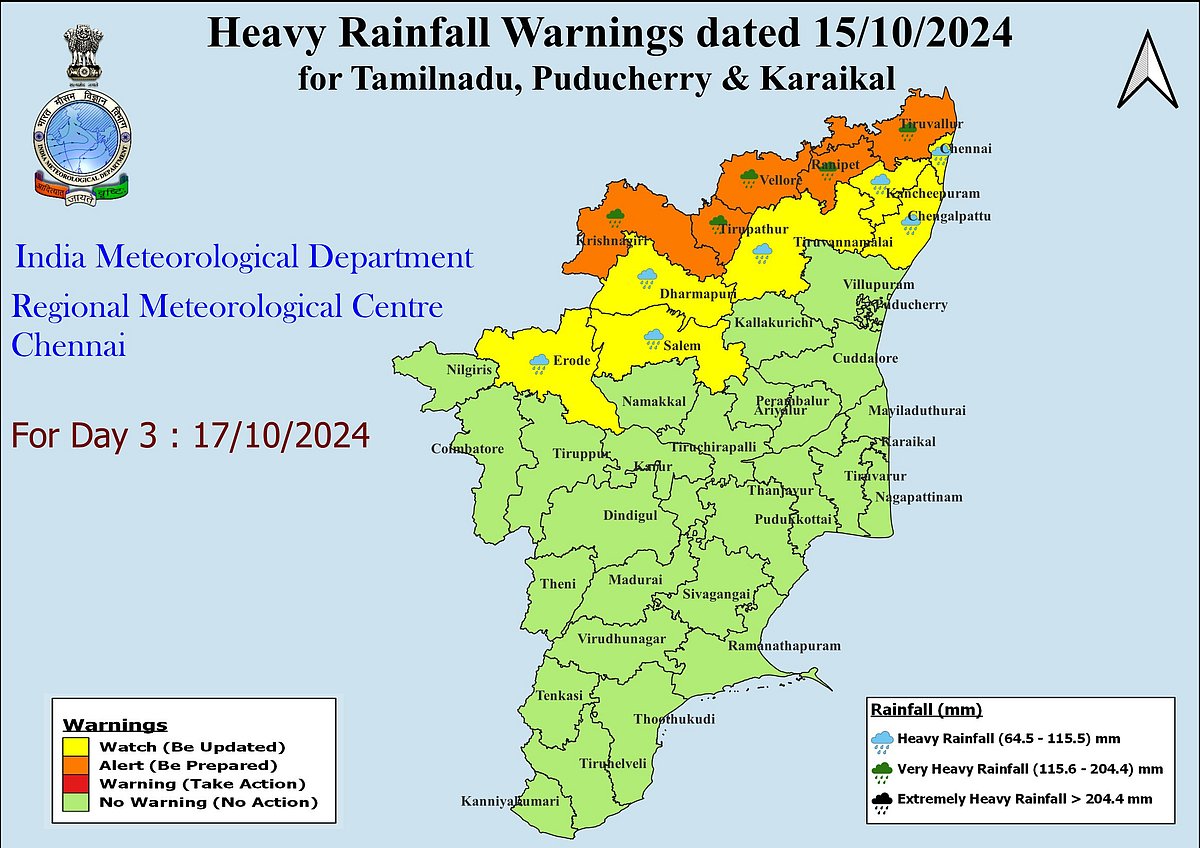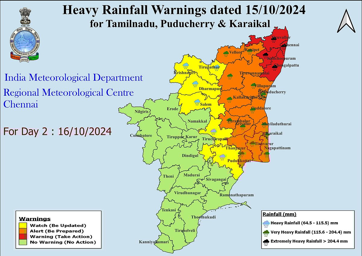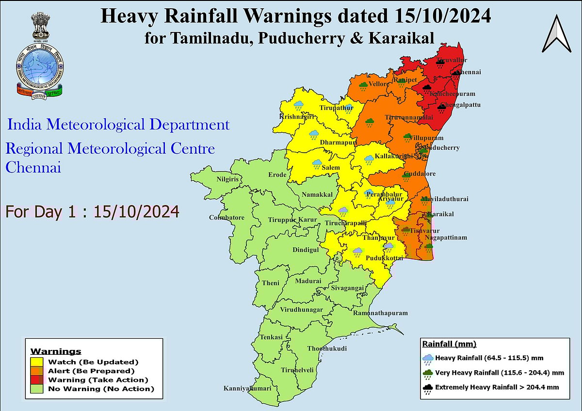 இதன் காரணமாக, சென்னை, காஞ்சிபுரம், திருவள்ளூர், செங்கல்பட்டு மாவட்டங்களில் கன முதல் மிக கனமழையும், ஓரிரு இடங்களில் அதிகனமழை பெய்யும் என்று தெரிவிக்கப்பட்டுள்ளது.