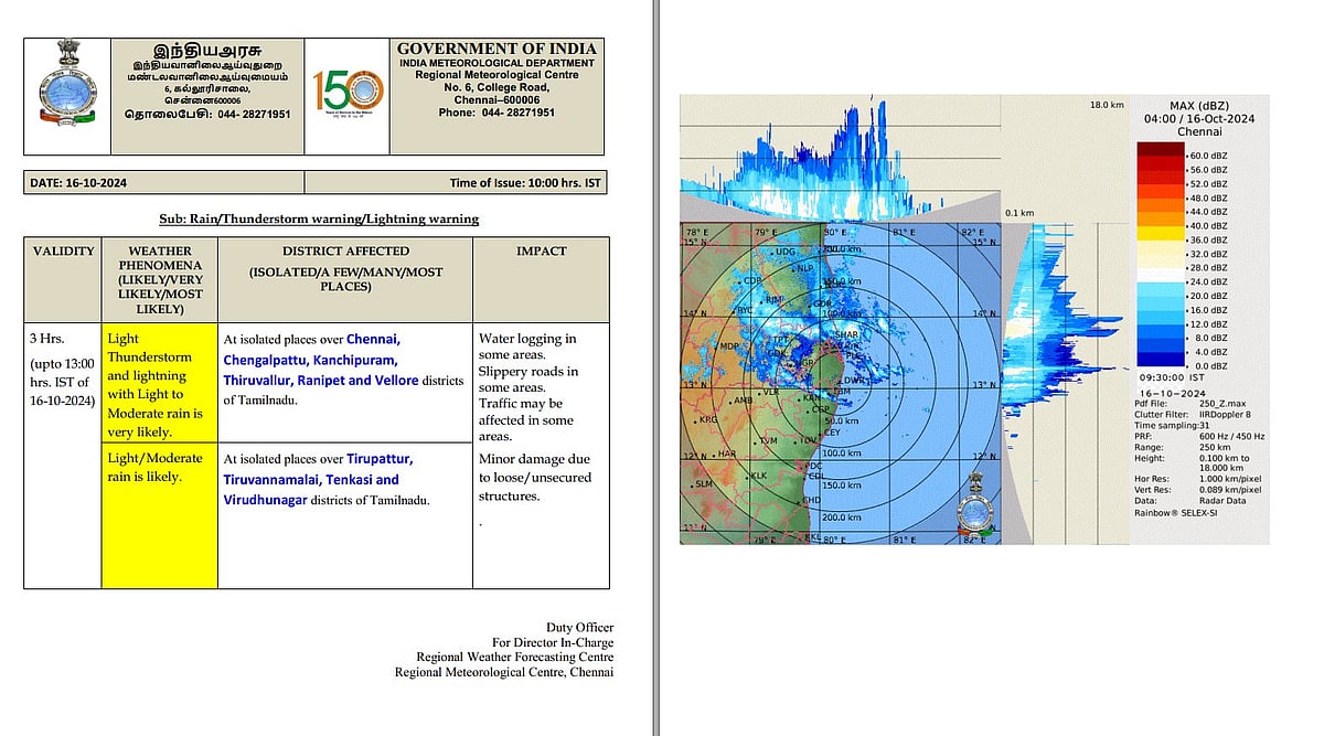 திருவள்ளூா், சென்னை, காஞ்சிபுரம், செங்கல்பட்டு மாவட்டங்களுக்கு புதன்கிழமை (அக். 16) அதி கனமழைக்கான சிவப்பு எச்சரிக்கை விடுக்கப்பட்டிருந்தது.