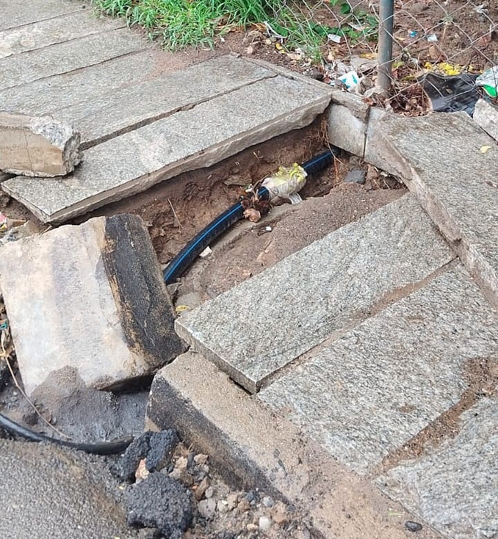மழை வெள்ளம் தெரியாமல் யாராவது தவறி விழுந்துவிடுவார்களோ என்ற நிலையில் பொறுப்பற்று நடைபாதையிலேயே தோண்டப்பட்ட குழி...