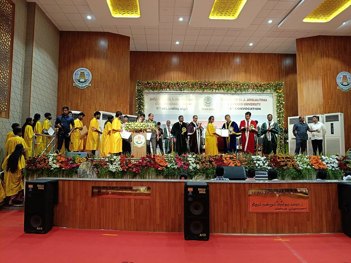 நாகப்பட்டினத்தில் டாக்டர் ஜெ.ஜெயலலிதா மீன்வளப் பல்கலைக்கழகத்தில் பட்டமளிப்பு விழா இன்று நடைபெற்றது. இதில் ஆளுநர் ஆர்.என். ரவி பங்கேற்று 391 மாணவ, மாணவிகளுக்கு பட்டங்களை வழங்கினார்.