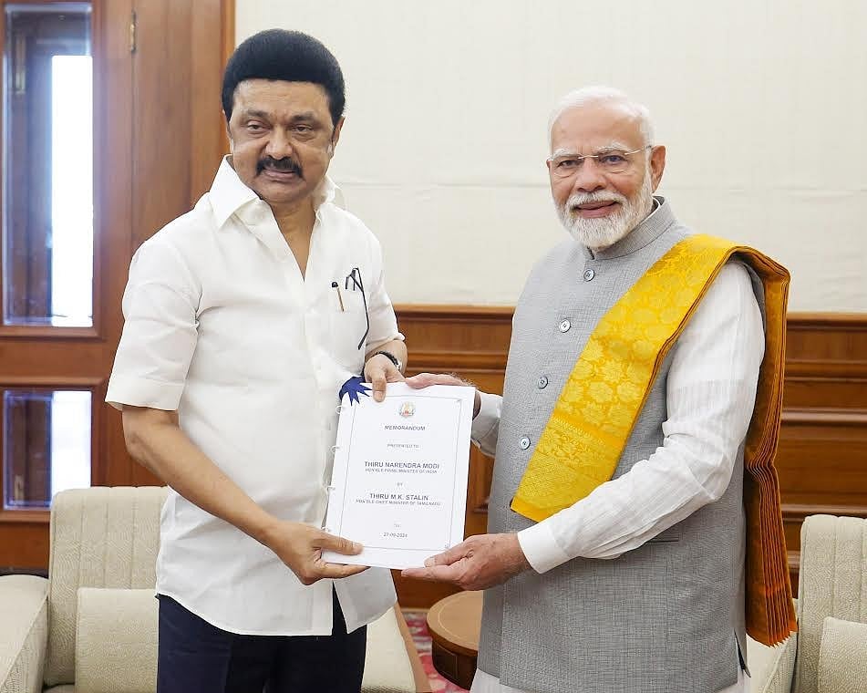 புதுதில்லியில் பிரதமர் நரேந்திர மோடியை தமிழ்நாடு முதல்வர் மு.க.ஸ்டாலின் வெள்ளிக்கிழமை நேரில் சந்தித்தார்.