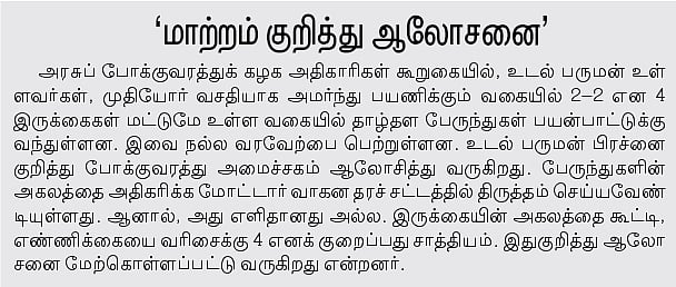 உடல் பருமன் பாதிப்பு அதிகரிப்பால் இருக்கை பிரச்னையால் அவதிப்படும் பேருந்துப் பயணிகளைப் பற்றி...