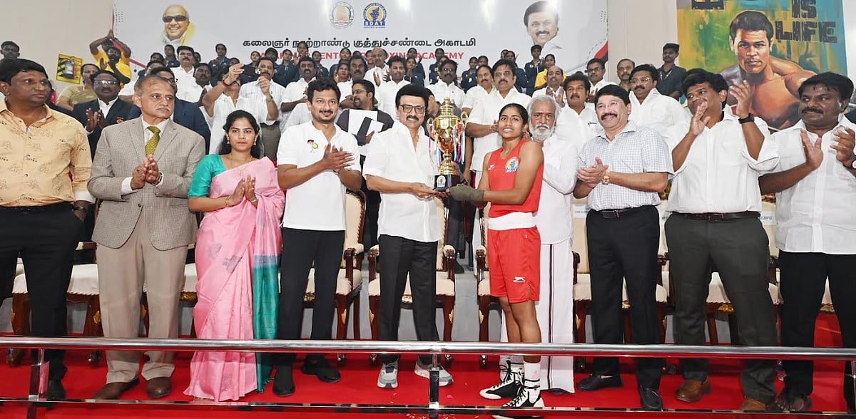 அதனைத் தொடர்ந்து, சென்னை கோபாலபுரத்தில் 8 கோடி ரூபாய் செலவில், 890 நபர்கள் அமரும் வகையிலான பார்வையாளர் மாடத்துடன் கூடிய முற்றிலும் குளிரூட்டப்பட்ட உள்அரங்கம், பயிற்சி மைதானம், உடற்பயிற்சிக் கூடம், பயிற்சியாளர் அறை, பயிற்சி செய்யும் பகுதி, மருத்துவர் அறை, நிர்வாக அலுவலகம் ஆகிய வசதிகளுடன் கட்டி முடிக்கப்பட்டுள்ள கலைஞர் நூற்றாண்டு குத்துச் சண்டை அகாதெமியை முதலமைச்சர் திறந்து வைத்து, அங்கு நடைபெற்ற 48 முதல் 51 கிலோ எடைப் பிரிவிற்கான குத்துச்சண்டை போட்டியை பார்வையிட்டு, வெற்றி பெற்ற குத்துச்சண்டை வீராங்கனைக்கு கோப்பையை வழங்கினார்.