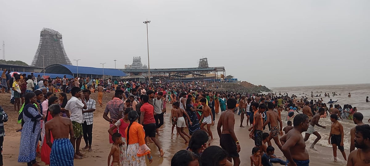 புதன்கிழமை அதிகாலை முதல் கடலில் புனித நீராடியும், அங்கப்பிரதட்சணம் எடுத்தும் ஏராளமான பக்தர்கள் ரூ.100 கட்டணம் மற்றும் இலவச பொது தரிசனப்பாதையில் நீண்ட வரிசையில் காத்திருந்து வழிபாடு செய்தனர்.