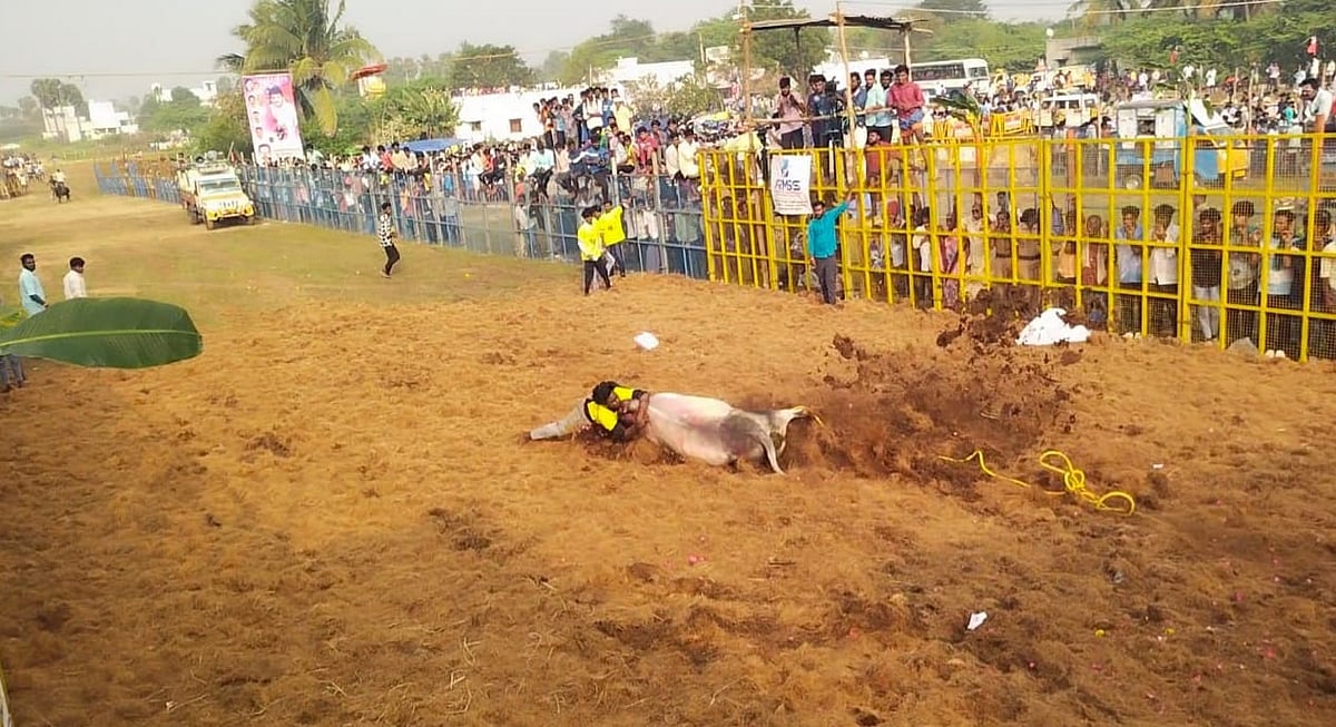 ஒரு காளையும் அதனைத் தழுவ முயற்சித்த காளையரும் உருண்டுபுரண்ட சம்பவம் மெய்சிலிர்க்கச் செய்தது.