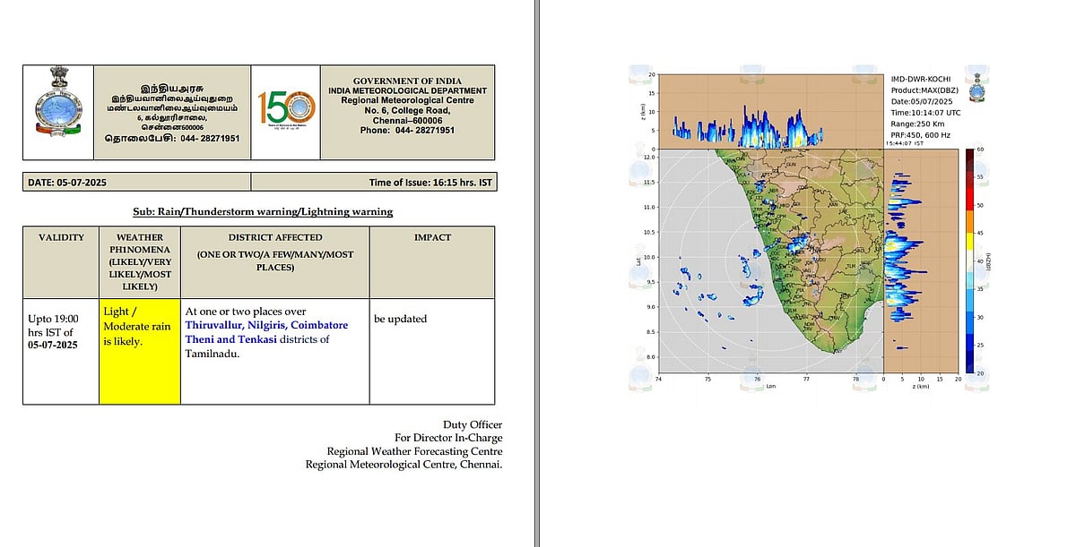 இந்நிலையில் அடுத்த 3 மணி நேரத்திற்கு அதாவது இரவு 7 மணி வரை திருவள்ளூர், நீலகிரி, கோவை, தேனி, தென்காசி ஆகிய மாவட்டங்களில் ஓரிரு லேசானது முதல் மிதமான மழை பெய்யக்கூடும் என்று அறிக்கையில் கூறப்பட்டுள்ளது.