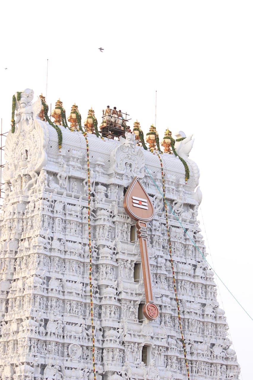 பக்தர்கள் மீது ட்ரோன்கள் மூலம் புனித நீர் தெளிக்கப்பட்டது. பாதுகாப்பு பணியில் சுமார் 5 ஆயிரத்துக்கும் மேற்பட்ட போலீசார் ஈடுபட்டனர்.