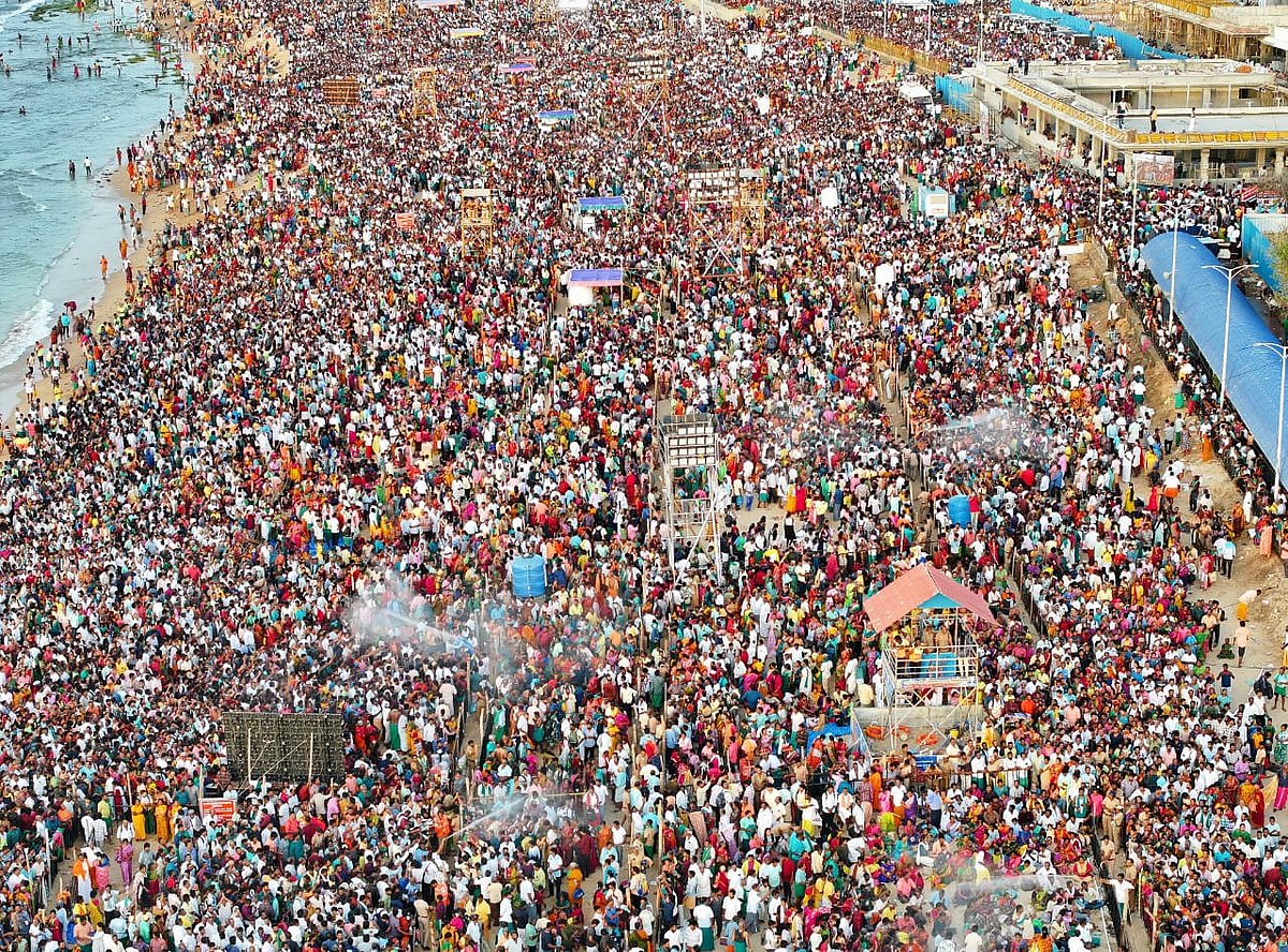 குடமுழுக்கையொட்டி, அதிகாலைமுதலே லட்சக்கணக்கான பக்தா்கள் கோயில், கடற்கரையில் குவிந்திருந்தனா். கந்தனுக்கு அரோகரா, முருகனுக்கு அரோகரா என்ற பக்தர்களின் கோஷம் விண்ணைப் பிளந்தது.