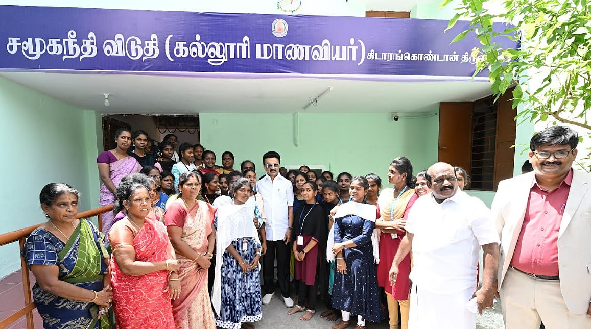 “சமூகநீதி விடுதி” என்று பெயர் மாற்றம் செய்யப்பட்டுள்ளதையொட்டி அதனை பார்வையிடும் நோக்கில், முதலமைச்சர் இன்றைய தினம் (10.7.2025) அரசு விழா நடைபெறும் திருவாரூர் எஸ்.எஸ். நகர் செல்லும் வழியில், கிடாரங்கொண்டானில் அமைந்துள்ள கல்லூரி மாணவர்களுக்கான சமூகநீதி விடுதி மற்றும் கல்லூரி மாணவியர்களுக்கான சமூகநீதி விடுதிகளுக்கு நேரில் சென்று, ஆய்வு மேற்கொண்டார்.