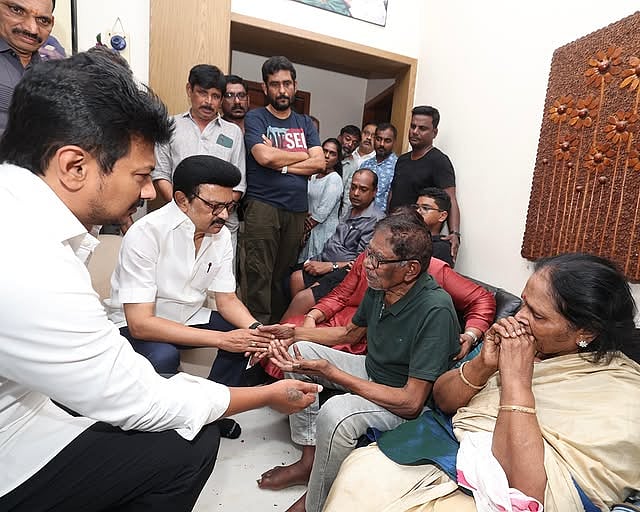 சென்னை நீலாங்கரையில் உள்ள பாரதிராஜாவின் வீட்டில் அஞ்சலிக்காக மனோஜின் உடல் வைக்கப்பட்டிருக்கும் நிலையில், தமிழக முதல்வர் மு.க.ஸ்டாலின் நேரில் அஞ்சலி செலுத்தினார்.