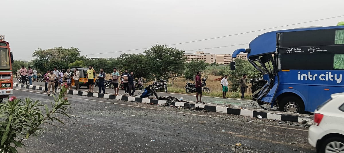 சுற்றுலா வேன் மீது தனியார் பேருந்து மோதி விபத்து; குழந்தை உள்பட 4 பேர் பலி