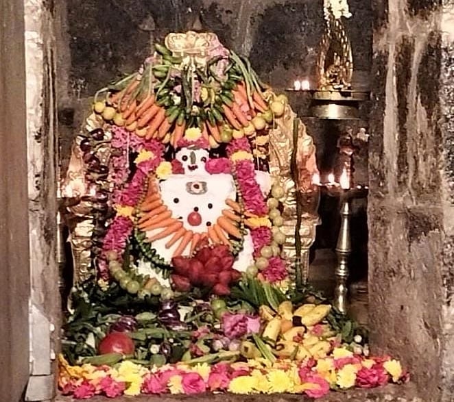காய்கறிகள் மற்றும் சாதத்தால் வடிவமைக்கப்பட்ட மூலவர், மற்றும் சாகம்பரியுடன் கூடிய சிவலிங்கத்தை காண பக்தர்கள் திரளாக வந்திருந்து கண்டு வழிபாடு செய்தனர்.