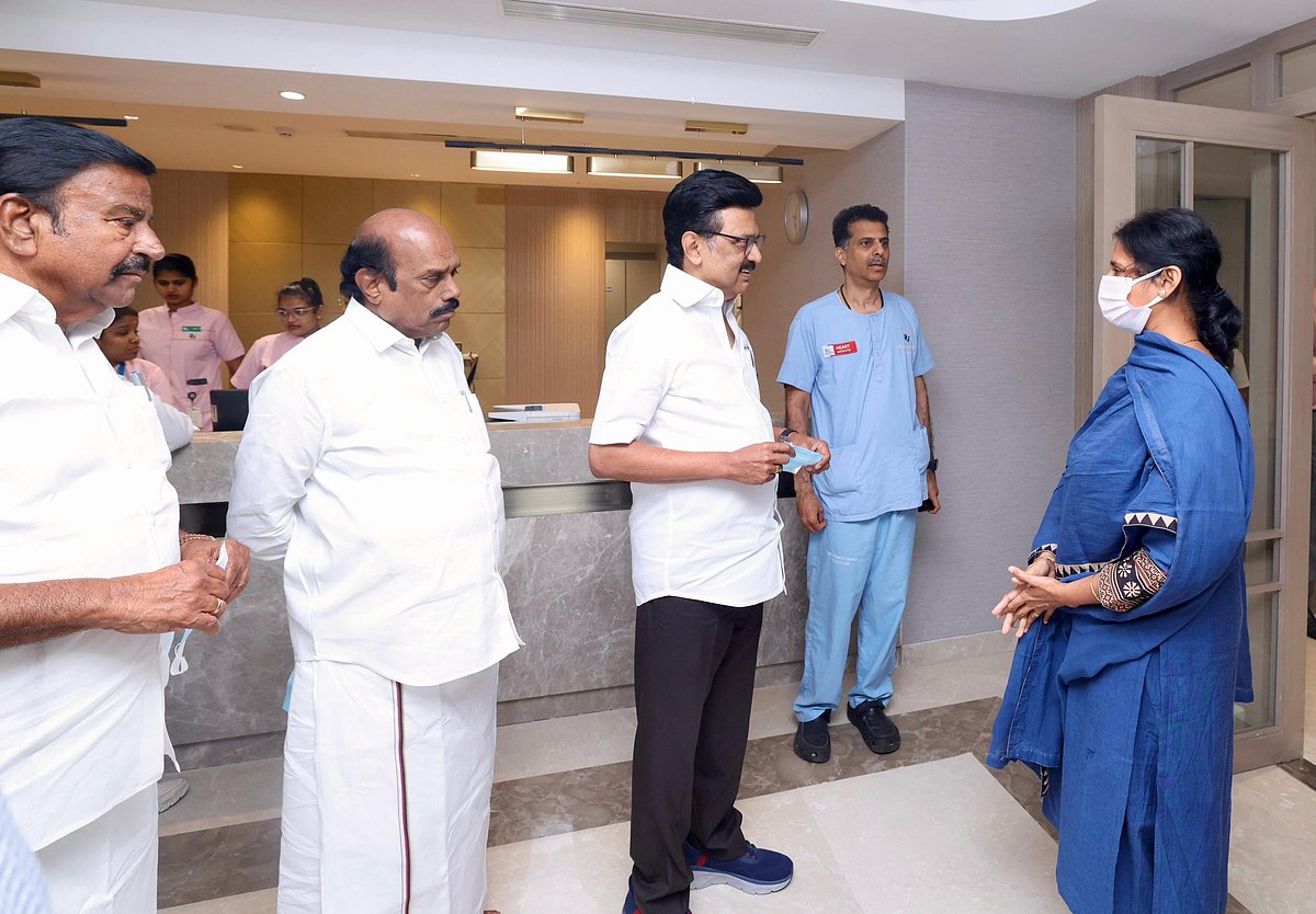 உடல்நலக்குறைவு காரணமாக சென்னை தனியார் மருத்துவமனையில் சிகிச்சை பெற்றுவரும் பாமக நிறுவனர் ராமதாஸ், மதிமுக பொதுச்செயலாளர் வைகோ ஆகியோரை முதல்வர் ஸ்டாலின் நேரில் சந்தித்து உடல்நலம் விசாரித்தார்.