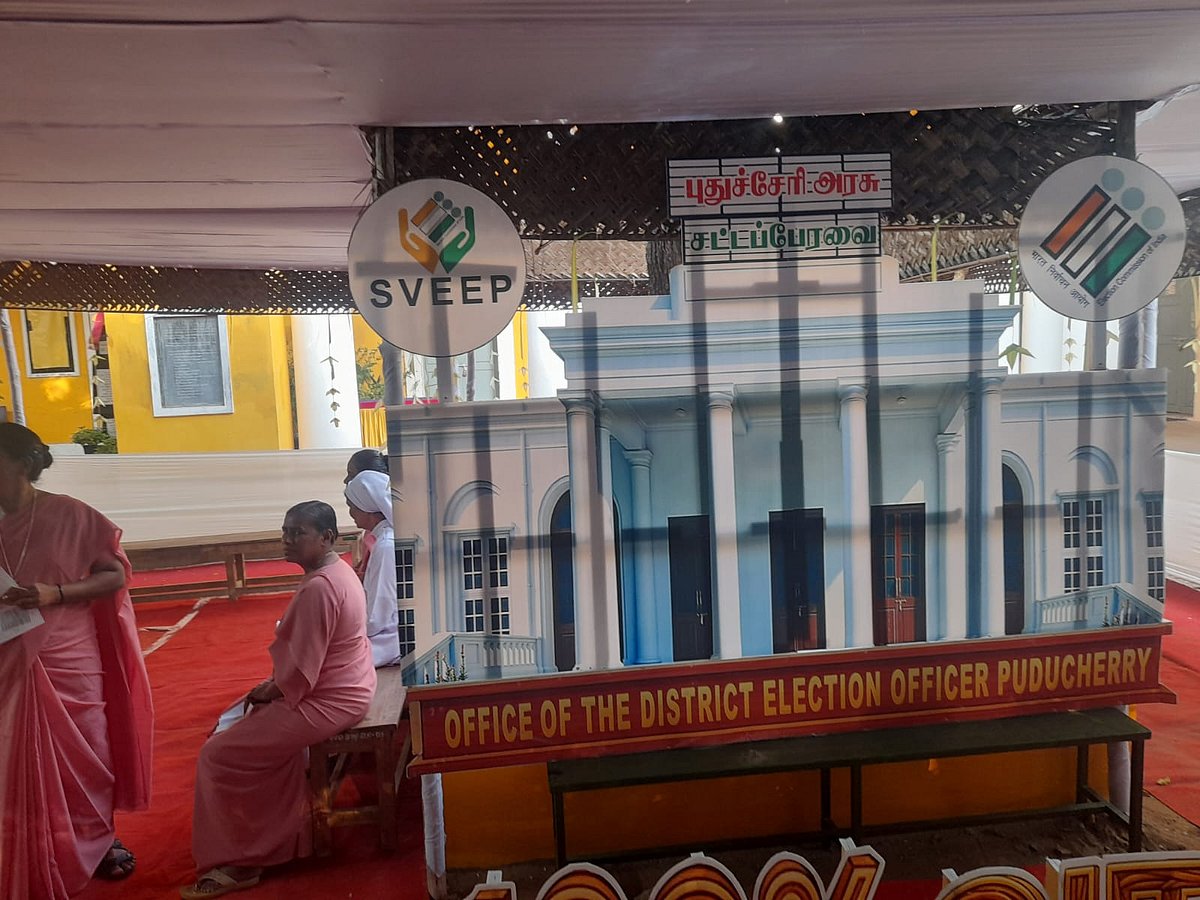 புதுச்சேரியில் அமைக்கப்பட்டுள்ள வாக்குச்சாவடி - DIN