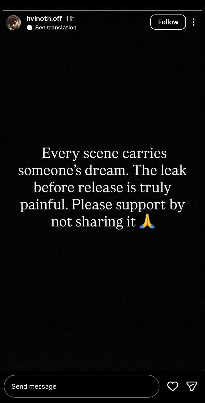 இந்த நிலையில், இயக்குநர் எச். வினோத் இன்ஸ்டாகிராம் பக்கத்தில் வெளியிட்ட பதிவில், “ஒவ்வொரு காட்சியும் ஒருவரின் கனவைச் சுமந்துள்ளது. வெளியீட்டுக்கு முன்பே அது கசிவது மிகப்பெரிய வலியைத் தருகிறது. தயவுசெய்து அதனைப் பகிராமல் ஆதரவளியுங்கள்” என்று மக்களுக்கு வேண்டுகோள் விடுத்துள்ளார்.