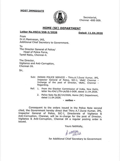Durai Kumar has been appointed as the Acting Director of the Directorate of Vigilance and Anti-Corruption.