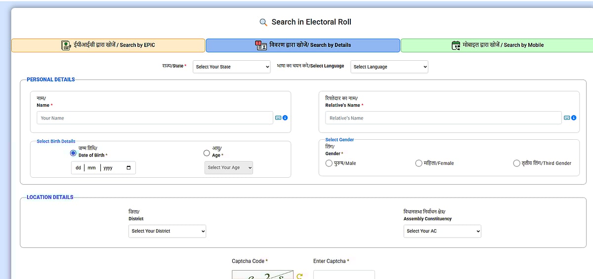 2. பெயர், உறவினர் பெயர், பாலினம், வயது / பிறந்த தேதி ஆகியவற்றை உள்ளிட்டு வாக்காளர் தகவல் சீட்டை பதிவிறக்கம் செய்துகொள்ளலாம்.