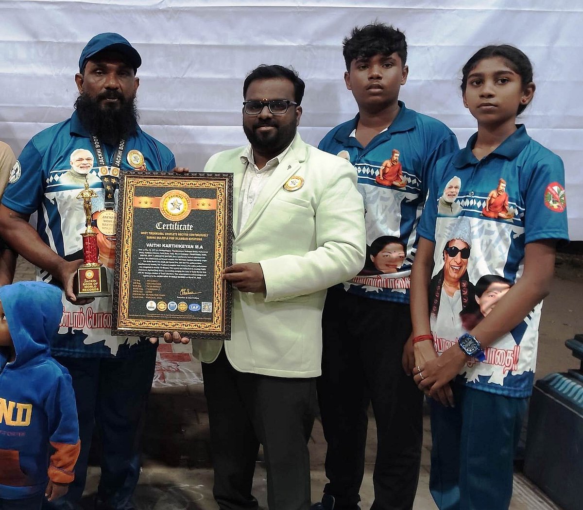அந்த சாதனையை ஜாக்கி புக் ஆப் வேர்ல்ட் ரெக்கார்ட் நிறுவனம் அங்கீகரித்து அவருக்கு பரிசு மற்றும் சான்றிதழும் வழங்கி கெளரவித்தனர்.