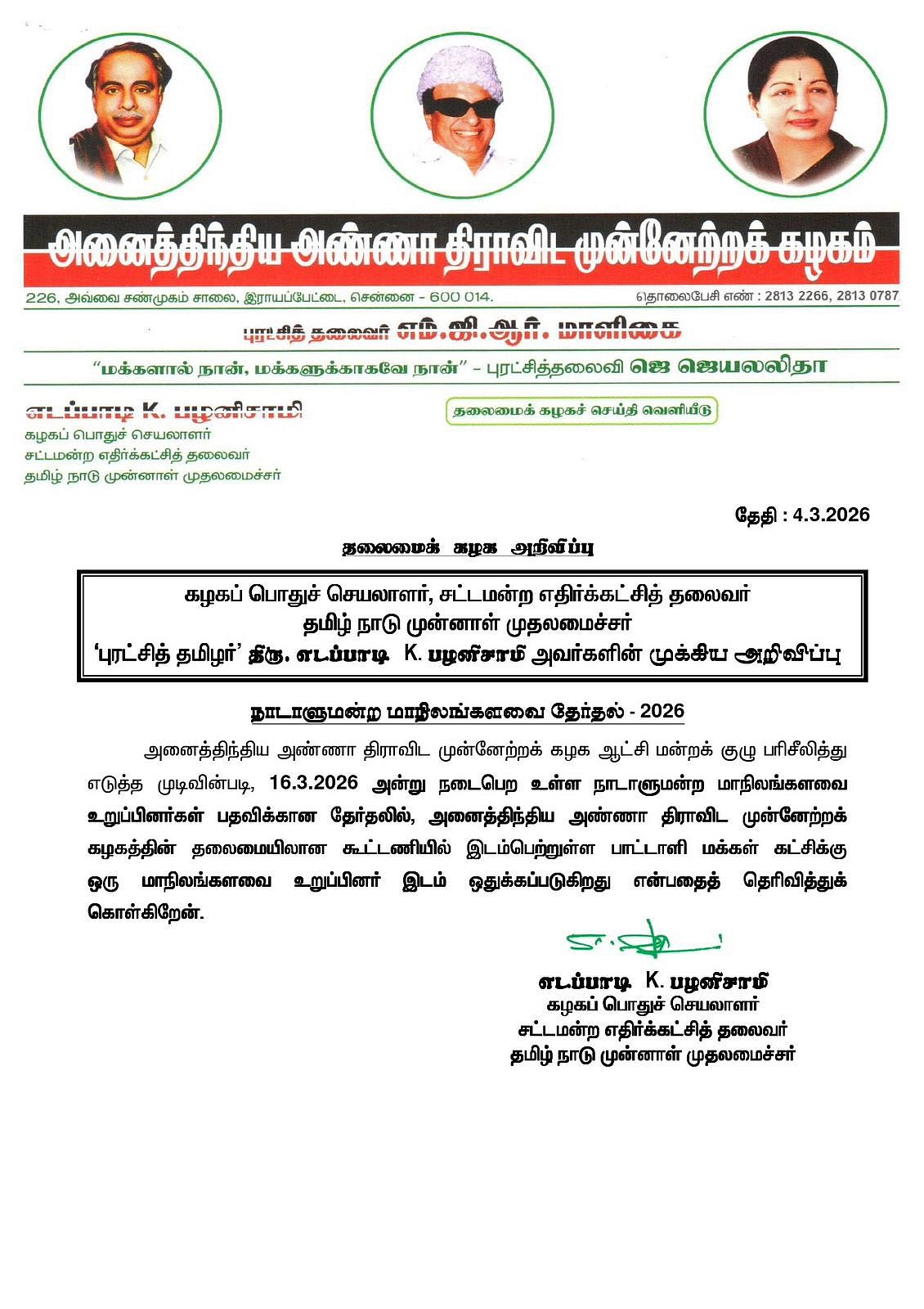 அதிமுக அறிக்கை