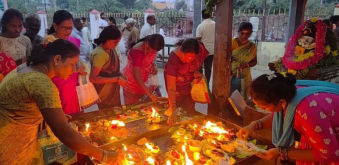 சிவன் கோயிலில் பெண்கள் தீபம் ஏற்றி வழிபாடு