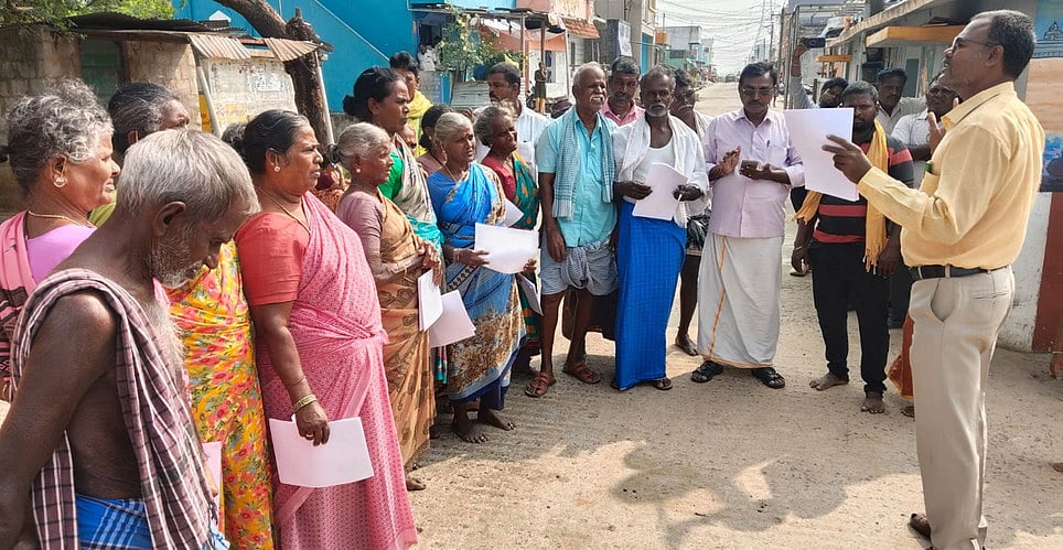திருவள்ளூா் அருகே எஸ்.ஐ.ஆா் படிவத்தை பூா்த்தி செய்து அதிகாரிகளிடம் வழங்க மறுத்து பொதுமக்கள் போராட்டம்