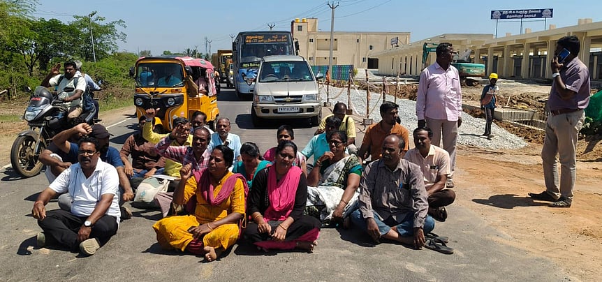 திருவள்ளூா் வேடங்கிநல்லூரில் புதிய பேருந்து நிலையம் அருகே உள்ள குடியிருப்பு பகுதிகளுக்கு பாதை கோரி பொதுமக்கள் வெள்ளிக்கிழமை சாலைமறியல் போராட்டத்தில் ஈடுபட்டனா்.