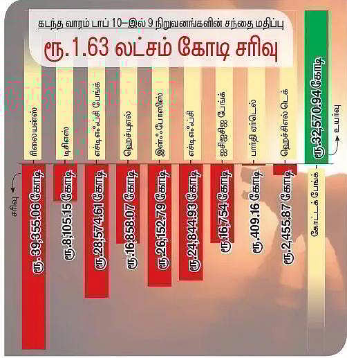‘டாப் 10-இல் 9 நிறுவனங்களின் சந்தை மதிப்பு ரூ.1.63 லட்சம் சரிவு