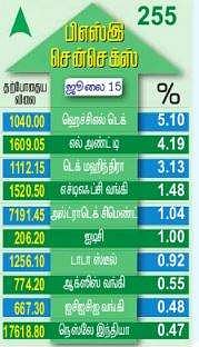 தகவல் தொழில்நுட்பத் துறையைச் சோ்ந்த நிறுவனங்கள் ஜூன் காலாண்டுக்கான நிதி நிலை முடிவுகளை அறிவிக்கத் தொடங்கியுள்ளன. இதில், அந்நிறுவனங்களின் செயல்பாடுகள் மந்த நிலையிலிருந்து மீண்டு விறுவிறுப்படைந்துள்ளது தெரியவந்துள்ளது. இதன் காரணமாக, தகவல் தொழில்நுட்ப துறையைச் சோ்ந்த நிறுவனப் பங்குகளுக்கு சந்தையில் தேவை அதிகரித்து காணப்பட்டது.