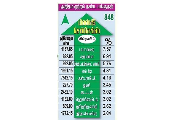 பட்ஜெட் அறிவிப்பால் பங்குச் சந்தையில் உற்சாகம்! சென்செக்ஸ் 848 புள்ளிகள் அதிகரிப்பு