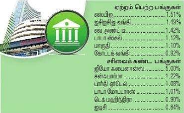 17 பங்குகள் விலை உயர்வு: சென்செக்ஸ் பட்டியலில் 13 பங்குகள் வீழ்ச்சியை சந்தித்தன. 17 பங்குகள் ஆதாயப் பட்டியலில் வந்தன. தேசிய பங்குச்சந்தையில் மொத்தம் 1,205 பங்குகள் ஆதாயப் பட்டியலிலும், 826 பங்குகள் வீழ்ச்சிப் பட்டியலிலும் இருந்தன. நிஃப்டி பட்டியலில் 29 பங்குகள் ஆதாயப் பட்டியலிலும் 22 பங்குகள் வீழ்ச்சிப் பட்டியலிலும் இருந்தன.