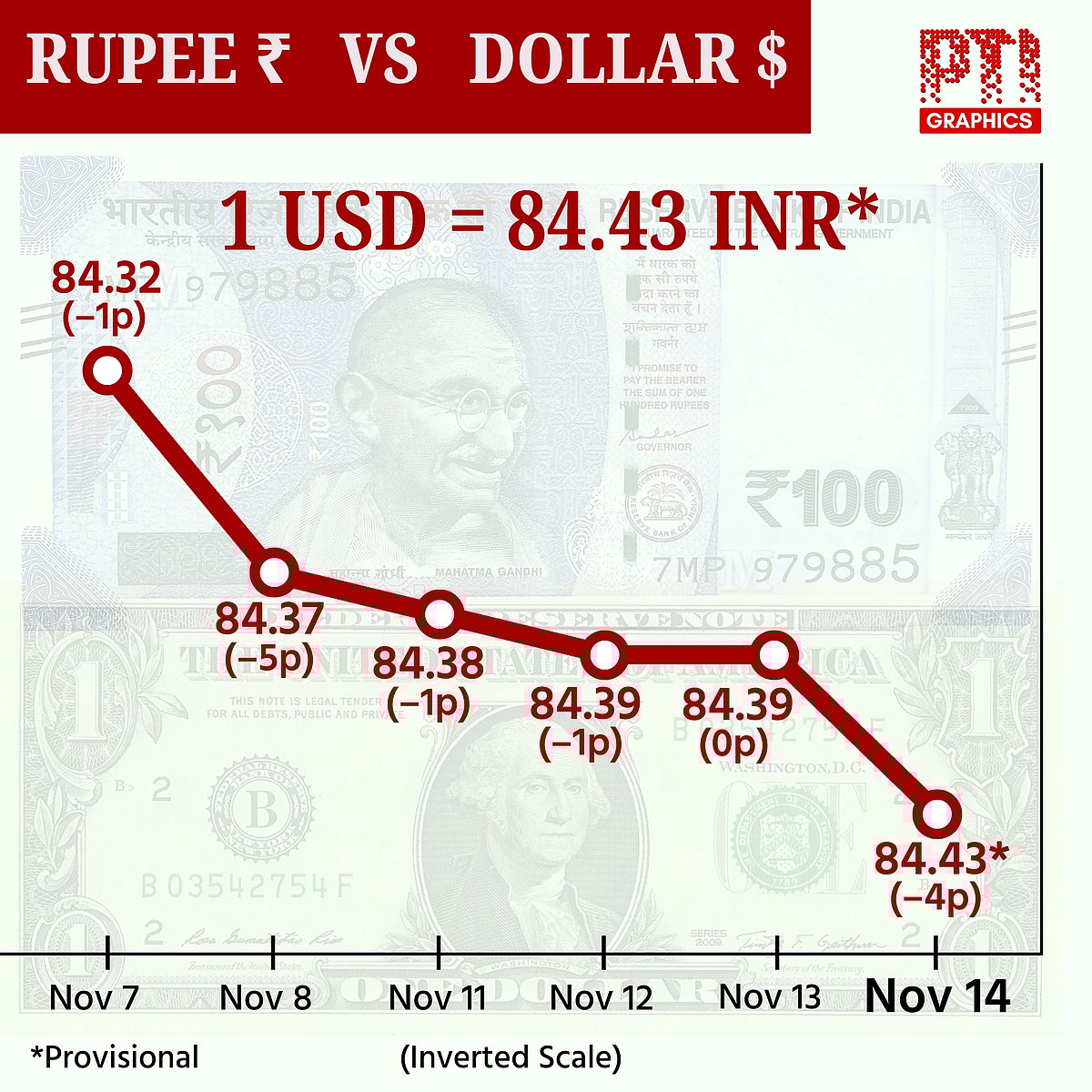 அமெரிக்க டாலருக்கு நிகரான ரூபாய் மதிப்பு இதுவரை இல்லாத அளவுக்கு இன்று (நவ. 14) சரிவைச் சந்தித்தது.