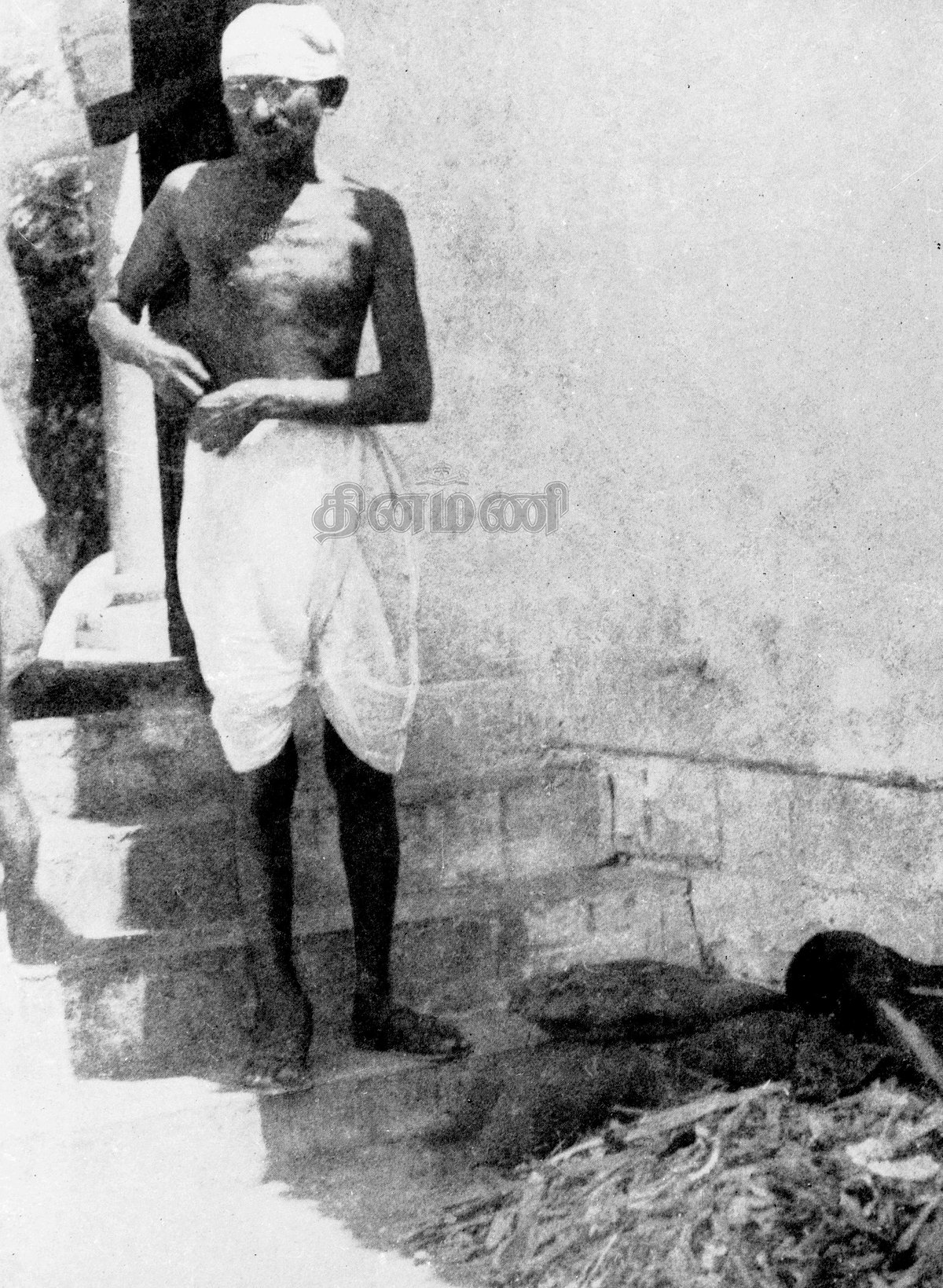 சேவாகிராம் ஆசிரமத்தில் சுகாதாரப் பணிகளை மேற்கொள்ள வேஷ்டியை வரிந்து கட்டிக் கொண்டு தானே களமிறங்கத் தயாராகும் மகாத்மாவின் புகைப்படம்...