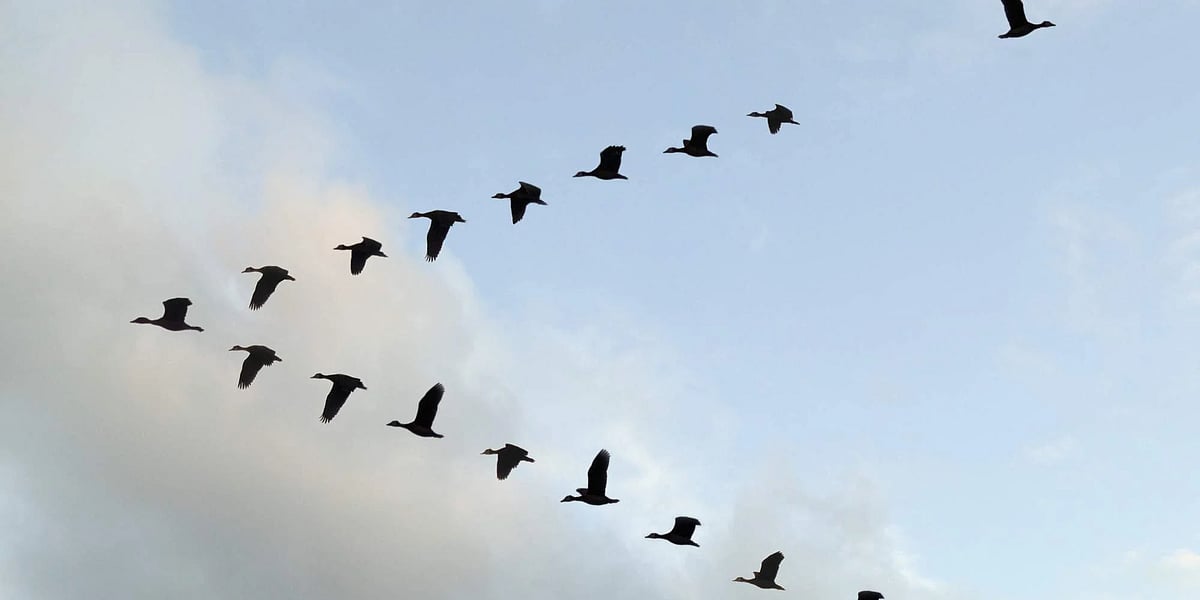 அறிவொளி : ஆமா, பறவைகள் கூட்டமா பறக்கும் போது எப்படி பறக்கும்னு கவனிச்சிருக்கியா ?