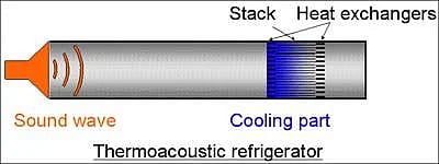 முதலில், அதற்கு ஒரு நிலை ஒலி அலையை (standing wave) உருவாக்க வேண்டும். ஒரு மூடப்பட்ட குழாயினுள் சத்தம் இருபுறமும் மாறி மாறி எதிரொலித்து, அந்த குழாய்க்குள் ஆங்காங்கே நெகிழ்வும் நெருக்கமாய் அமைந்து, அந்த நிலை அலை உருவாகி இருக்கும். நெருக்கத்தில் அதிக வெப்பநிலையும், நெகிழ்வுகளில் குறைந்த வெப்பநிலையும் இருக்கும். ஆனால், வெறுமனே அதை குழாய்க்குள் வைத்துக்கொண்டு என்ன செய்வது? அதை வெளியில் கொண்டுவந்தால்தானே குளிர்விக்க முடியும். அதற்காக, வெப்பமாற்றிகள் (heat exchangers) வைக்க வேண்டும். ஒலி நகரும் திசைக்கு செங்குத்தாக மெல்லிய உலோகத் தகடுகளை வைத்தால், உள்ளே உருவாகும் வெப்ப மாறுதல்களை அந்தத் தகடுகள் வெளியே கடத்தும்.