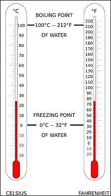 நீரின் உறைநிலையை பூஜ்ஜியம் செல்சியஸ் என்றும், கொதிநிலையை நூறு டிகிரி செல்சியஸ் என்றும் சொல்கிறோம் அல்லவா? அது அப்படியே தலைகீழ். சாதாரண காற்றழுத்த நிலையில் சுத்தமான நீர் எந்த வெப்பநிலையில் உறைகிறதோ அதை பூஜ்ஜியம் என்றும், எந்த வெப்பநிலையில் கொதிக்கத் தொடங்குகிறதோ அதை நூறு டிகிரி என்றும் வைத்து, இடைப்பட்ட அளவை நூறு சம அளவீடுகளாகப் பிரித்து, ஒவ்வொன்றும் ஒவ்வொரு டிகிரி ஆக்குகிறார்கள். ஃபாரன்ஹீட் அளவீடு என்பது நீரின் உறைநிலையையும், ஒரு ஆரோக்கியமான மனிதனின் சராசரி உடல் வெப்பநிலையையும் அடிப்படையாகக் கொண்டது.