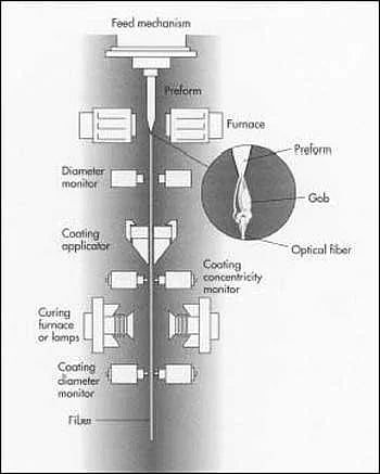 இந்தக் கண்ணாடி இழைக் கம்பிகளை அப்படியே நூல் நூற்பதுபோலத் தயாரித்துவிட முடியாது. அதன் தயாரிப்பு முறை சற்றே வித்தியாசமானது. ஒரு விரல் உள்ளே போகக்கூடிய அளவு கண்ணாடிக் குழாய்களை முதலில் தயாரிப்பார்கள். இதற்குப் ப்ரீஃபார்ம் (preform) என்று பெயர். இந்தப் ப்ரீஃபார்மை நெட்டுக்குத்தாகத் தொங்கவிட்டு, முனையில் இருந்து ஒரு சாண் தள்ளி, அப்படியே நெருப்பைக் காட்டி நெகிழவைப்பார்கள். ஒரு சாண் கண்ணாடியில் எடை நெகிழ்ந்த பகுதியில் இருக்கும் கண்ணாடியை அப்படியே மெல்லிய கண்ணாடி இழையாக இழுக்கும். மீதமிருக்கும் குழாயையும் இப்படி வெப்பத்தால் நெகிழ்த்தி இழையாக்கிவிடுவார்கள். இப்படித்தான் கண்ணாடி இழைகள் தயாரிக்கப்படுகின்றன. வெறும் கண்ணாடியில் ஆனதால், இவை நீர் புகாதவையாக இருக்கின்றன.