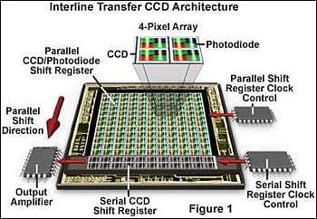 கேமராக்கள் இதைத்தான் செய்கின்றன. நாம் பட்டனை அழுத்தும்போது, அந்தச் சிறிய சிலிகான் சில்லின் பரப்பில் லென்ஸின் வழியே வெளிப்புற ஒளி விழுகிறது. இப்போது விழும் ஒளியின் அளவுக்கு ஏற்ப அதன் பிக்ஸெல் கட்டங்களில் மின்னேற்றம் உண்டாகிறது. அந்தச் சில்லின் ஒரு புறம் இருக்கும் ஒரு ரிஜிஸ்டர் மூலம், ஓரமாக வரிசையில் இருக்கும் பிக்ஸெல்களின் அளவீடுகள் ஒவ்வொன்றாக அளக்கப்பட்டு நினைவகத்தில் சேமிக்கப்படுகிறது. பின்னர், அடுத்த வரிசையின் மின்னேற்றம் அலுமினியம் இழைகளுக்குச் செலுத்தப்படும் மின்சாரத்தின் திசையை மாற்றிக்கொடுப்பதன் மூலம் ஓர வரிசைக்கு நகர்த்தப்படுகிறது. இப்படியே மொத்த சில்லிலும் உருவான மின்னேற்றம் அளக்கப்பட்டு படமாகச் சேமிக்கப்படுகிறது. வேகம் அதிகம் வேண்டுமெனில், இரண்டு ரிஜிஸ்டர்கள் பயன்படுத்திக்கொள்ளலாம்.